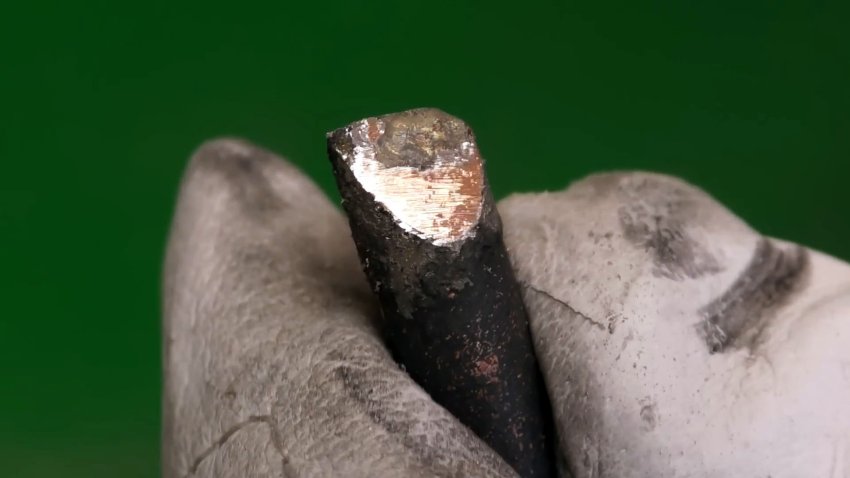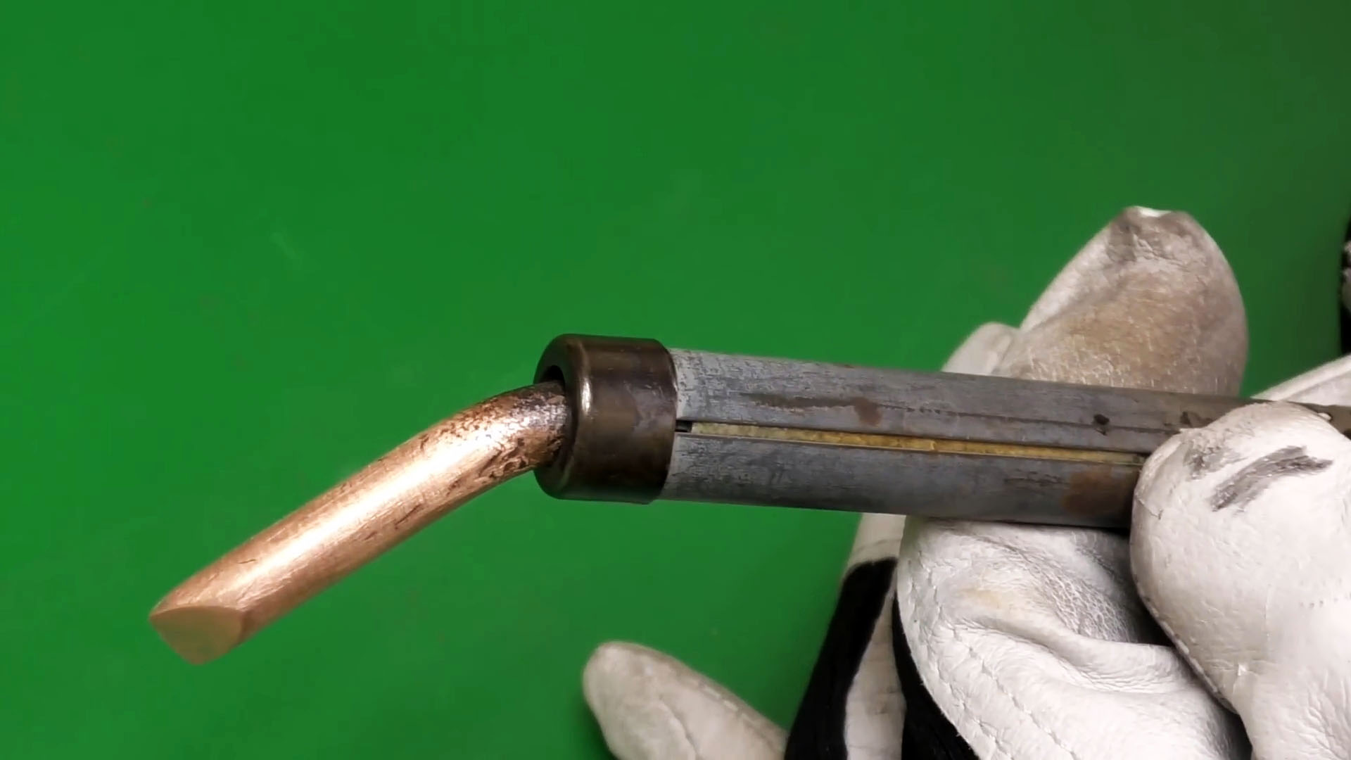 Но не трогайте рабочую зону — она уже готова к работе. Затем включите нагрев и посмотрите, как медь меняет цвет и темнеет, образуя защитный оксидный слой. По такому жалу припой не растекается, залуженной остается только рабочая область. Работать таким паяльником проще, а пайка будет аккуратнее.