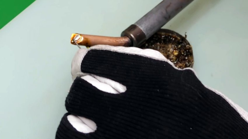 Теперь подготовьте паяльник, включите его и подождите. На этом этапе часто допускают ошибку. Не стоит ждать, когда жало начнет менять цвет. Это значит, что на нем уже образовался оксид меди, от которого вы избавились.