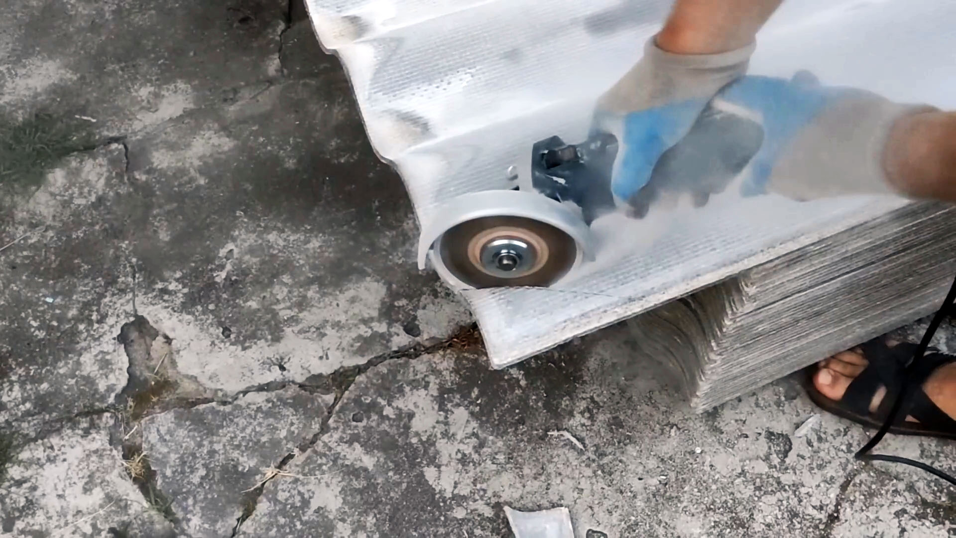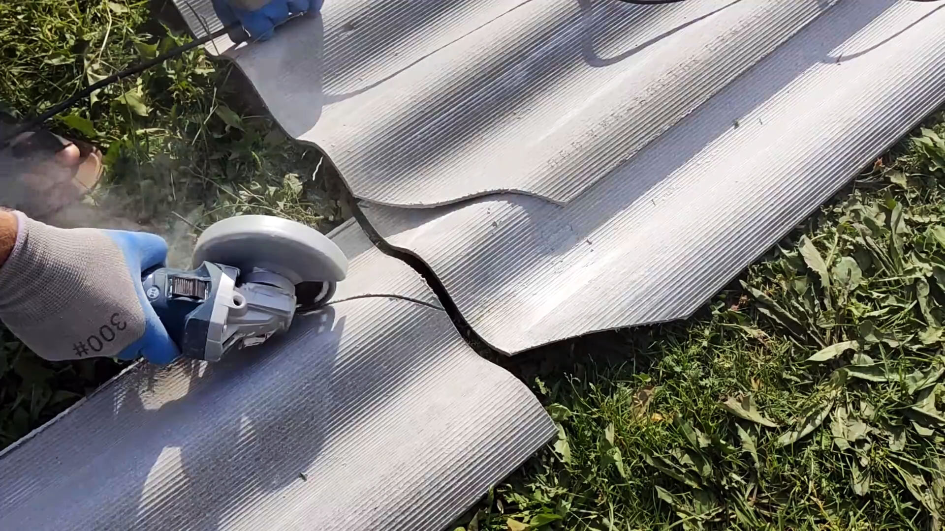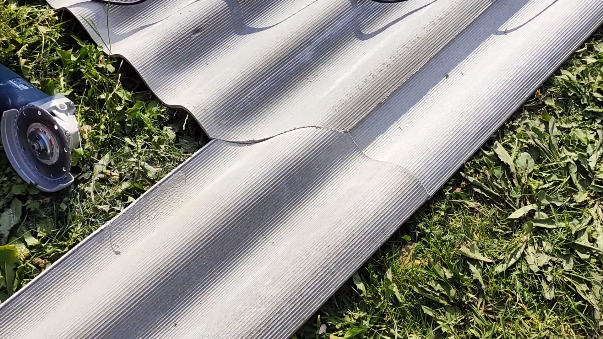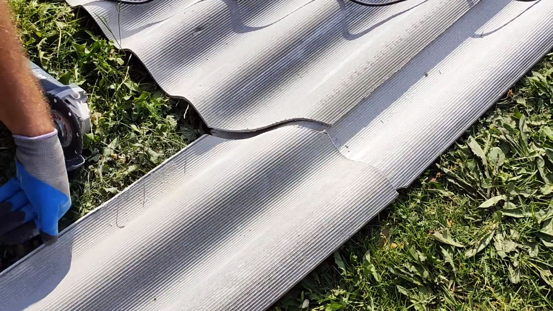 Если для укладки не хватает шифера, можно сделать вставку в предпоследнем ряду. Для этого нужно заранее разложить все листы и отметить углы, а затем отпилить их.