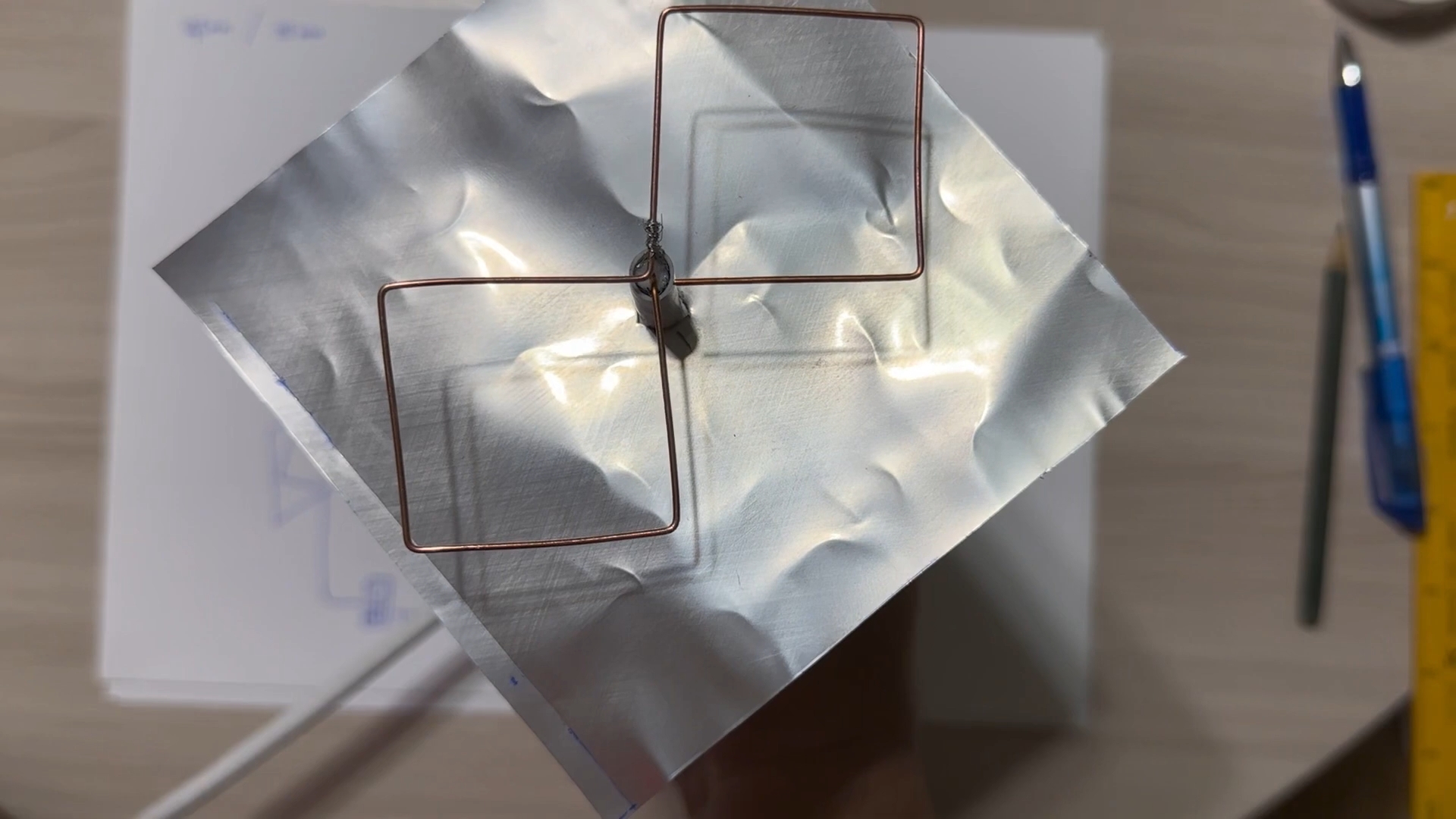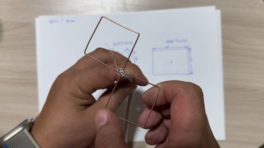 Сформируйте квадраты: отметьте на центральной жиле точки через каждые 30,5 мм. С помощью плоскогубцев согните жилу под углом 90 градусов в отмеченных точках, формируя два квадрата. Следите за точностью углов и размеров — это влияет на эффективность антенны.
