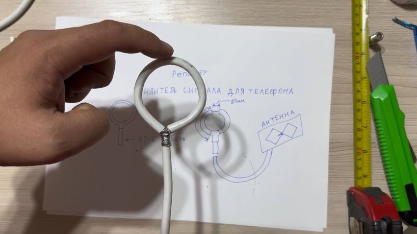 Подключите репитер: соедините центральную жилу кольца с антенной (например, с центральной жилой антенны).