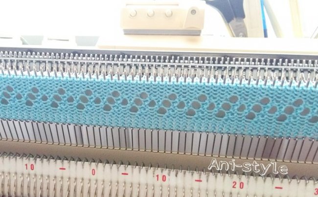 97 ряд — вяжем фасонный ажур по перфокарте.