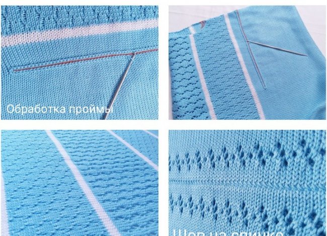 Теперь можно приступить к обвязке крючком пройм, горловины и низа.