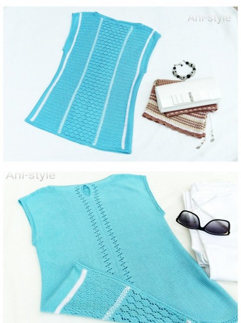 Простой вязаный топ с ажурными вставками - «Машинное вязание»