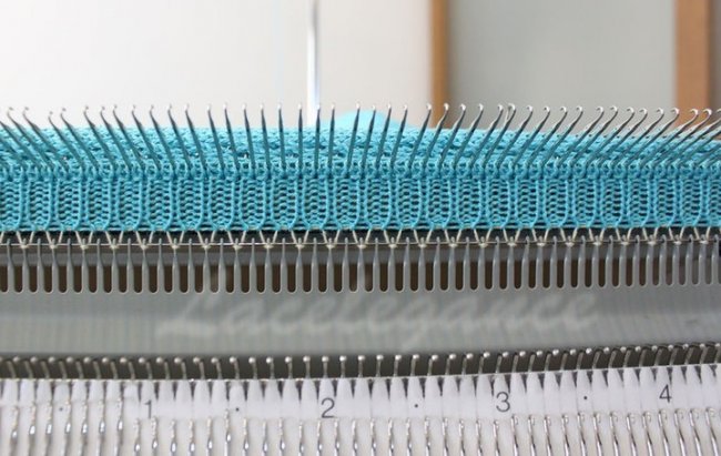 Установите контролирующие рычаги вашей машины так, чтобы вязали только иглы передней фонтуры, и свяжите 1 ряд.