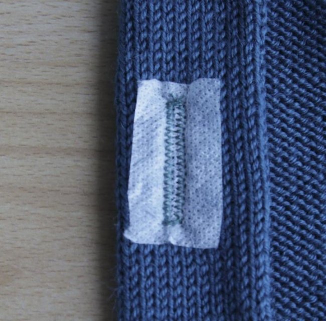1. Чтобы поставить петельку на швейной машине, использую сверху водорастворимую пленку и снизу водорастворимый флизелин — они несколько стабилизируют текучее трикотажное полотно.