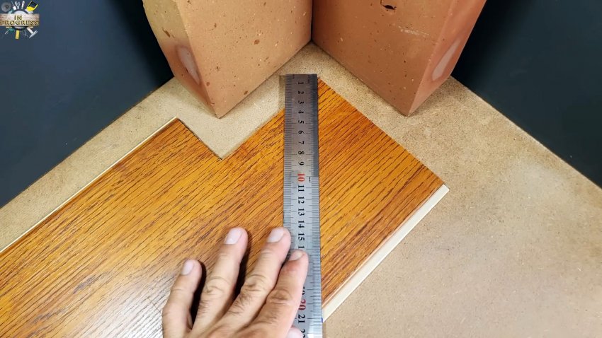 А бывают случаи, когда выступ не в углу, а вдоль стены помещения. Тогда разумно использовать предварительно изготовленный шаблон.