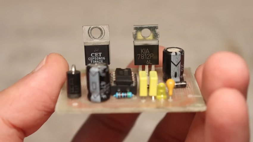 Сам регулятор питается от стабилизатора 12 Вольт, а силовое питание идёт сразу на полевик, минуя стабилизатор.