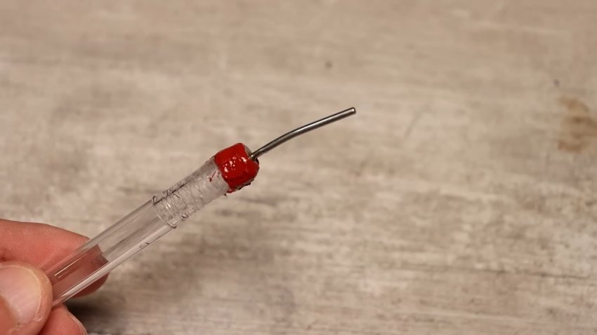 Под установку иглы отверстие пришлось немного расширить при помощи сверла. Сама игла установлена также с дополнительной фиксацией герметиком. Внутрь корпуса ручки поместили кусок поролона в качестве фильтра от попадания пыли, припоя, кусочков мусора.