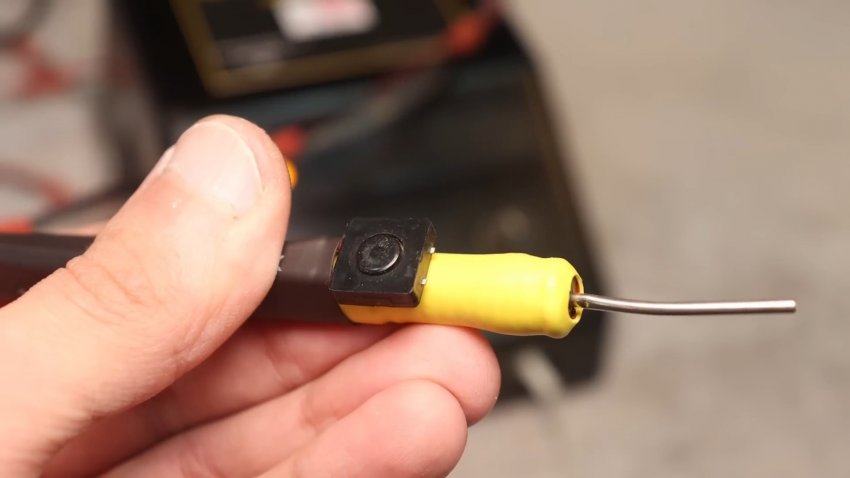 На рукоятке кнопка. Просто подаёт напряжение от источника. Когда кнопка отжата, ШИМ-регулятор с компрессором обесточены. Провод от пинцета к блоку питания лучше применить гибкий, типа МГТФ. Впрочем, у нас такого не нашлось и взяли обычный в виниле.