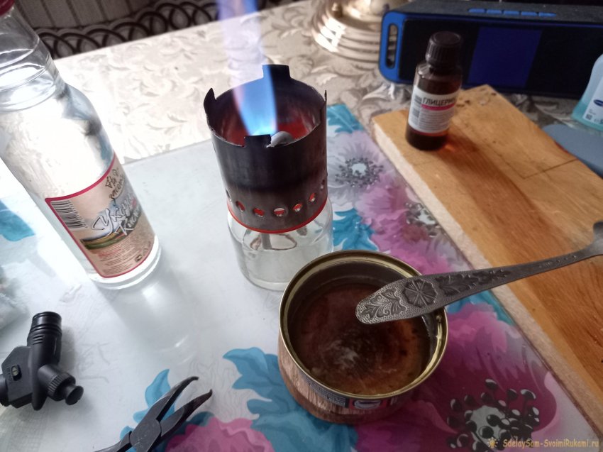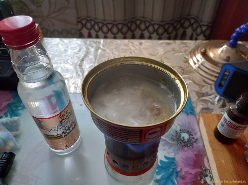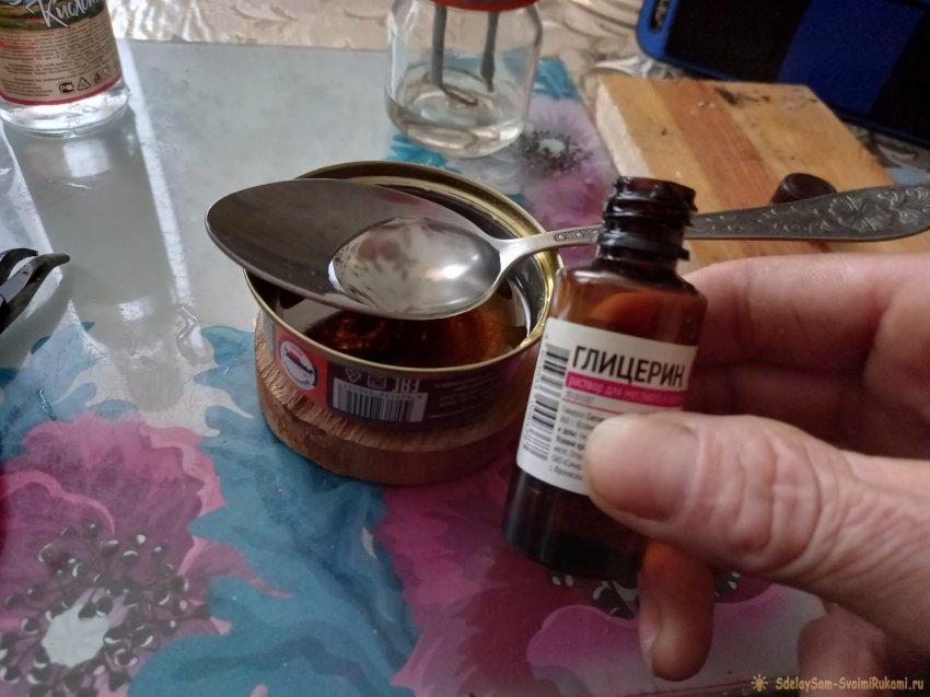 Тщательно перемешиваем. Далее добавляем глицерин. Половину столовой ложки.