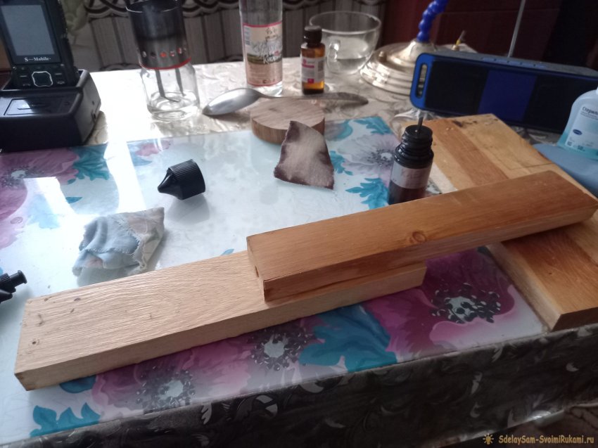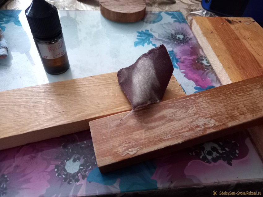 Ну и теперь можно испытать клей в деле. Возьмем два любых ненужных отрезка досок. Небольших. Зачищаем наждачной бумагой склеиваемые поверхности.