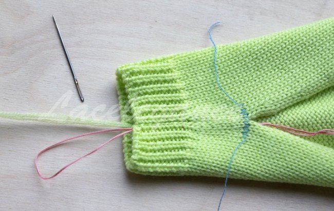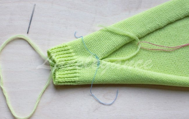 В самом начале вязания оставляем нить, по длине равную будущему шву +10-15 см.
