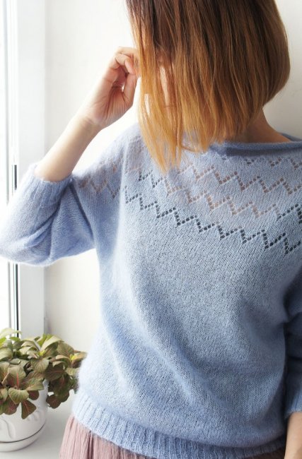 В этой работе важно было соединить ажурные полоски на деталях спинки и переда при сшивании.