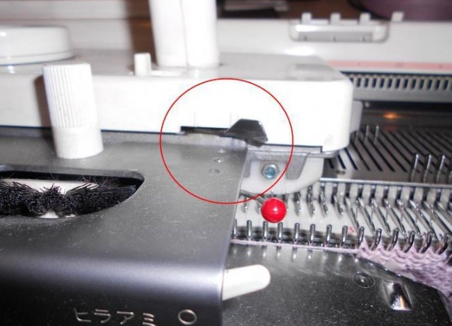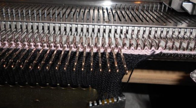 Для этого переводим рычажки в положение полного вязания и проходим 4 ряда, плотность при этом не забываем поменять на троечку, более плотно, каретка слева.
