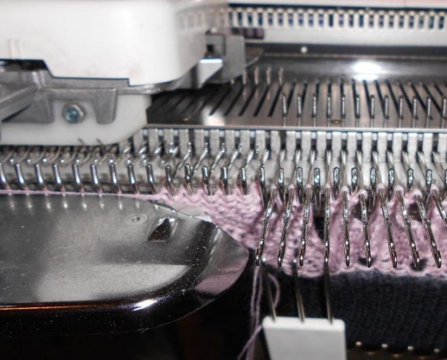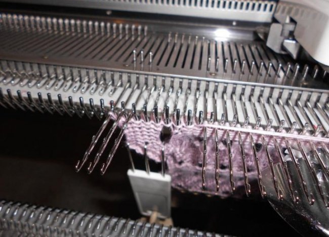 Таким образом проходим весь ряд до конца, передвигаясь по 3 петельки за 10 проходов кареткой (вот здесь и нужен такой важнецкий компонент, как нервы).