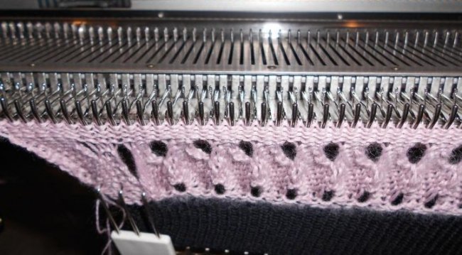 Я не буду первооткрывателем способа вязания столь популярного узора на машине, но, может, кому-то понравится результат, и вы рискнете пройти тем же путем.