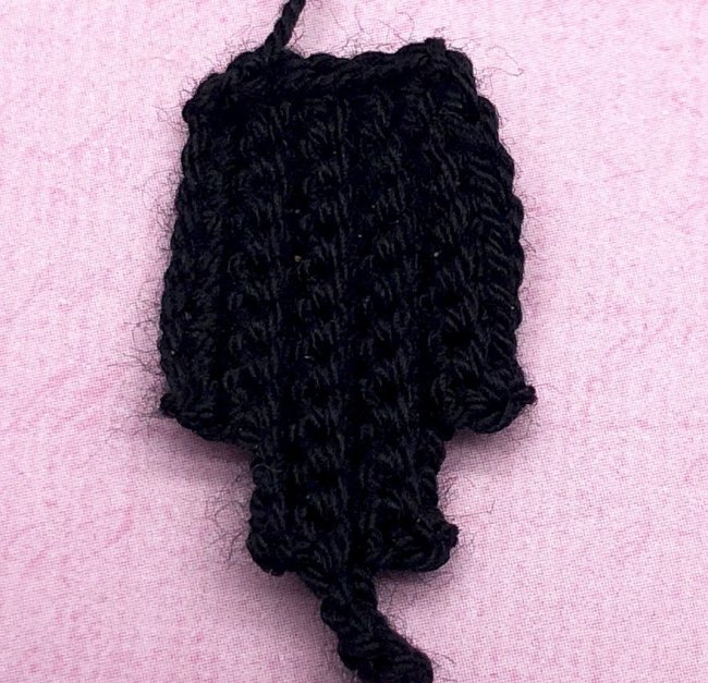 Ряд 9: СБН в след. 8 п., 1 в.п., провязать равномерно 5 СБН по верхнему краю хвостика, отрезать и закрепить нить.