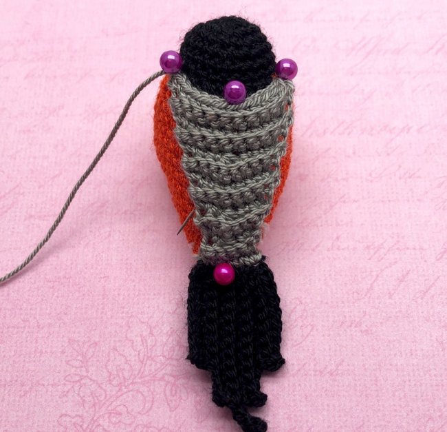 Совместить центр спинки/хвостика с туловищем, закрепить булавками и пришить.