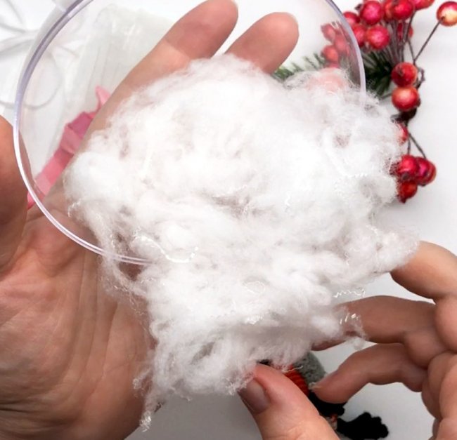 Застелить дно шара наполнителем для игрушек «лебяжий пух».