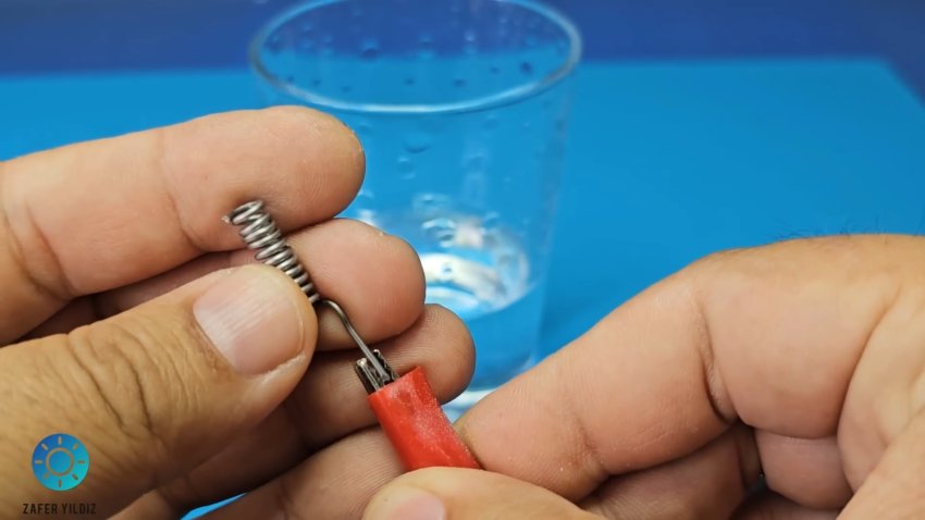 Значит все работает как надо. Далее переходим непосредственно к восстановлению жала паяльника. Спираль подключаем к плюсу, а жало к минусу.