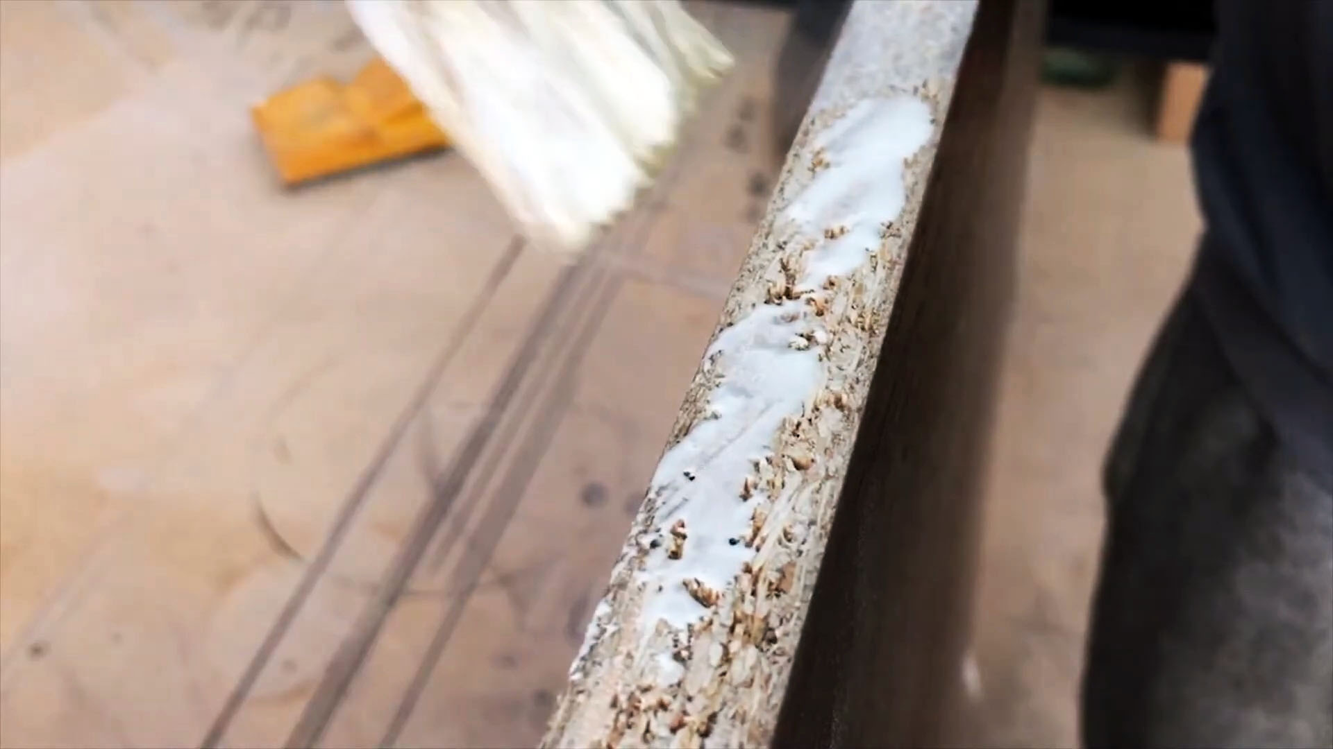 Сначала я выравниваю неровности на спиле наждачной бумагой, а затем пропитываю влагостойким клеем с уровнем защиты «D4».